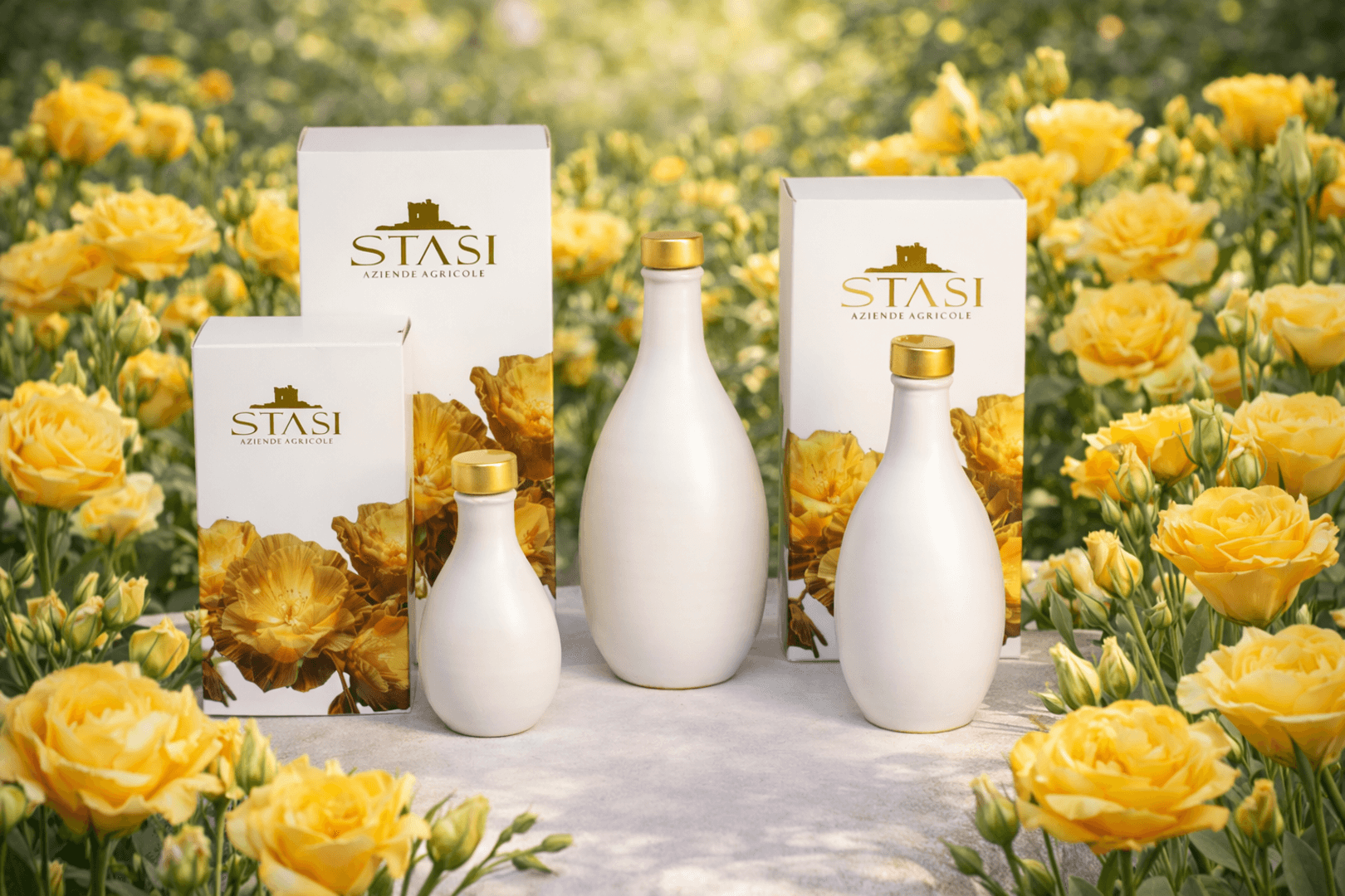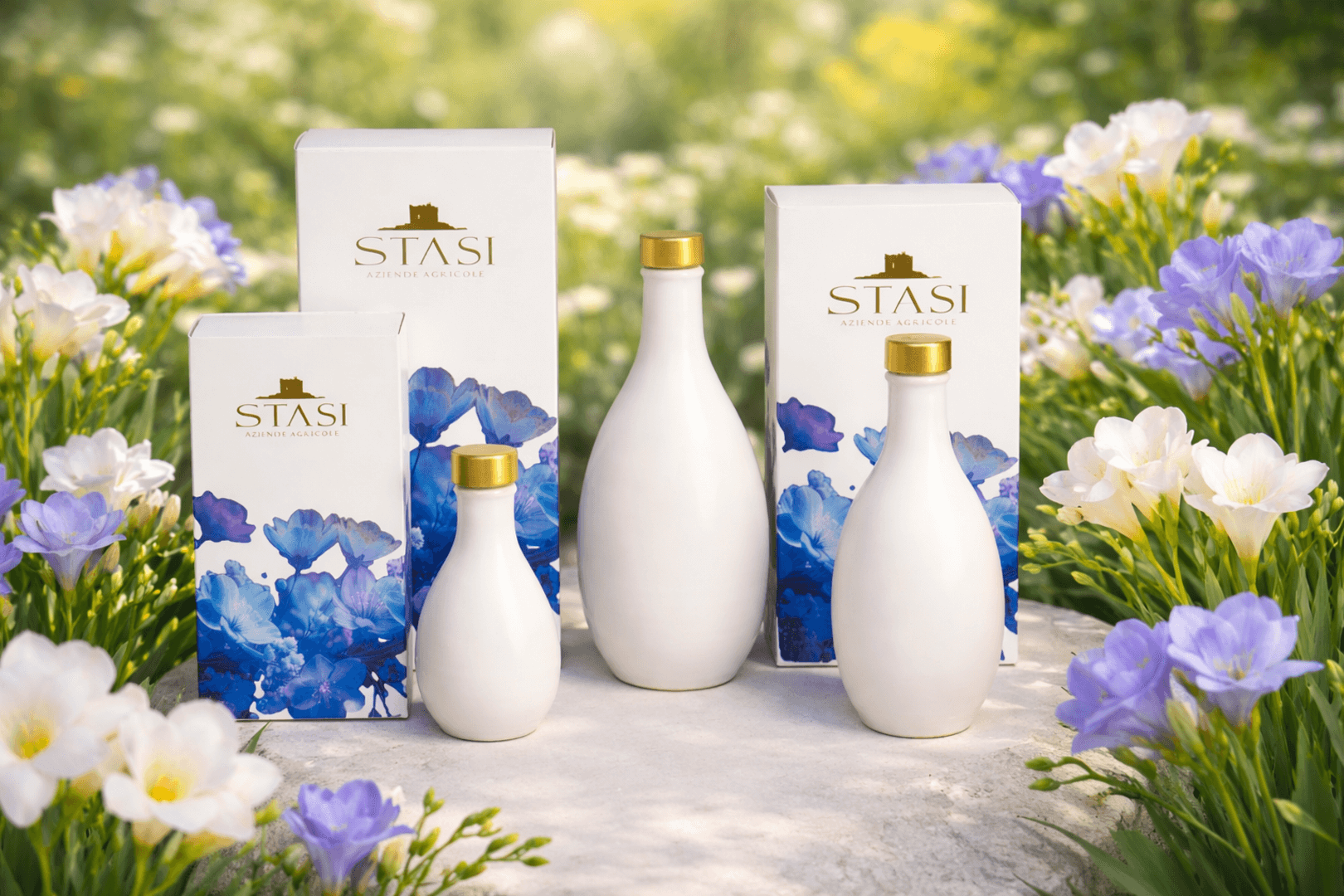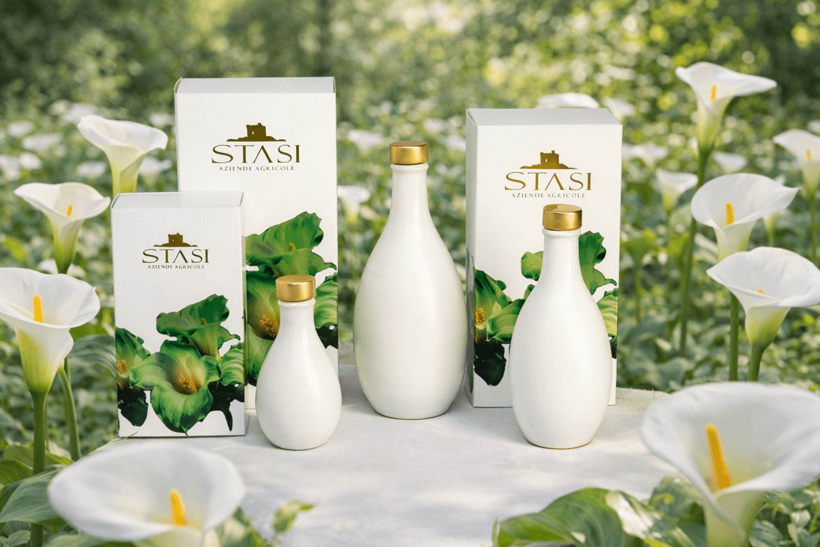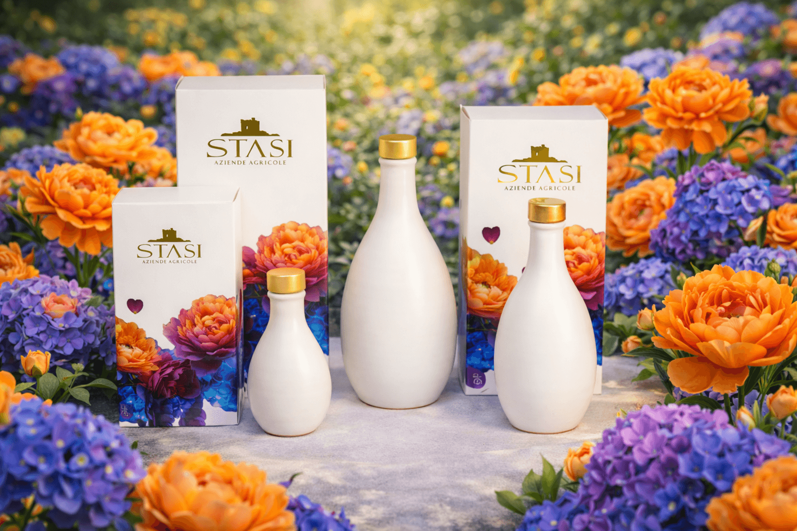 Le Ceramiche Stasi, nascono dalla creatività dei Maestri ceramisti della famiglia Colì di Cutrofiano, storica azienda salentina. Il design grafico della confezione, frutto dell’estro di giovani art creators, è un’elegante Box regalo con ben cinque nuances floreali che richiamano gli intramontabili fiori, tipici dei matrimoni salentini. Questa partnership, unica, custodisce l’Evo Aulìa, rendendolo un regalo prezioso, memoria lieta di un giorno felice. L’arte del Dono nella sua più sensazionale rappresentazione di colori, forme e profumi.